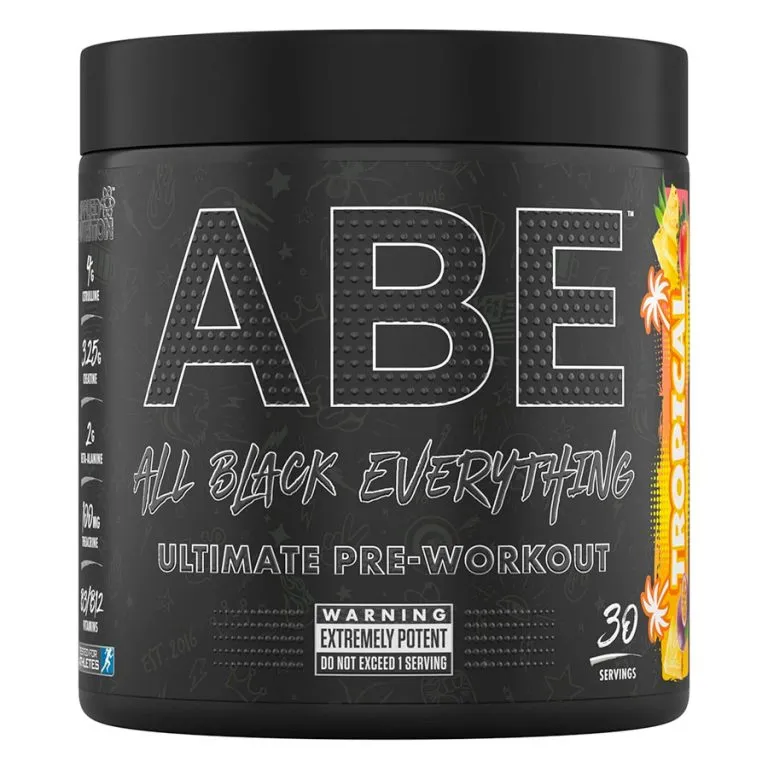 ABE, which stands for All Black Everything, is a high‑intensity pre‑workout designed for those who want serious performance. If you’re going in hard at the gym, pushing your limits, and aiming for maximal pumps, endurance, and energy, ABE delivers. It’s formulated with researched ingredients to help reduce fatigue, boost focus, increase strength output, and enhance nitric oxide (blood flow) during training sessions.