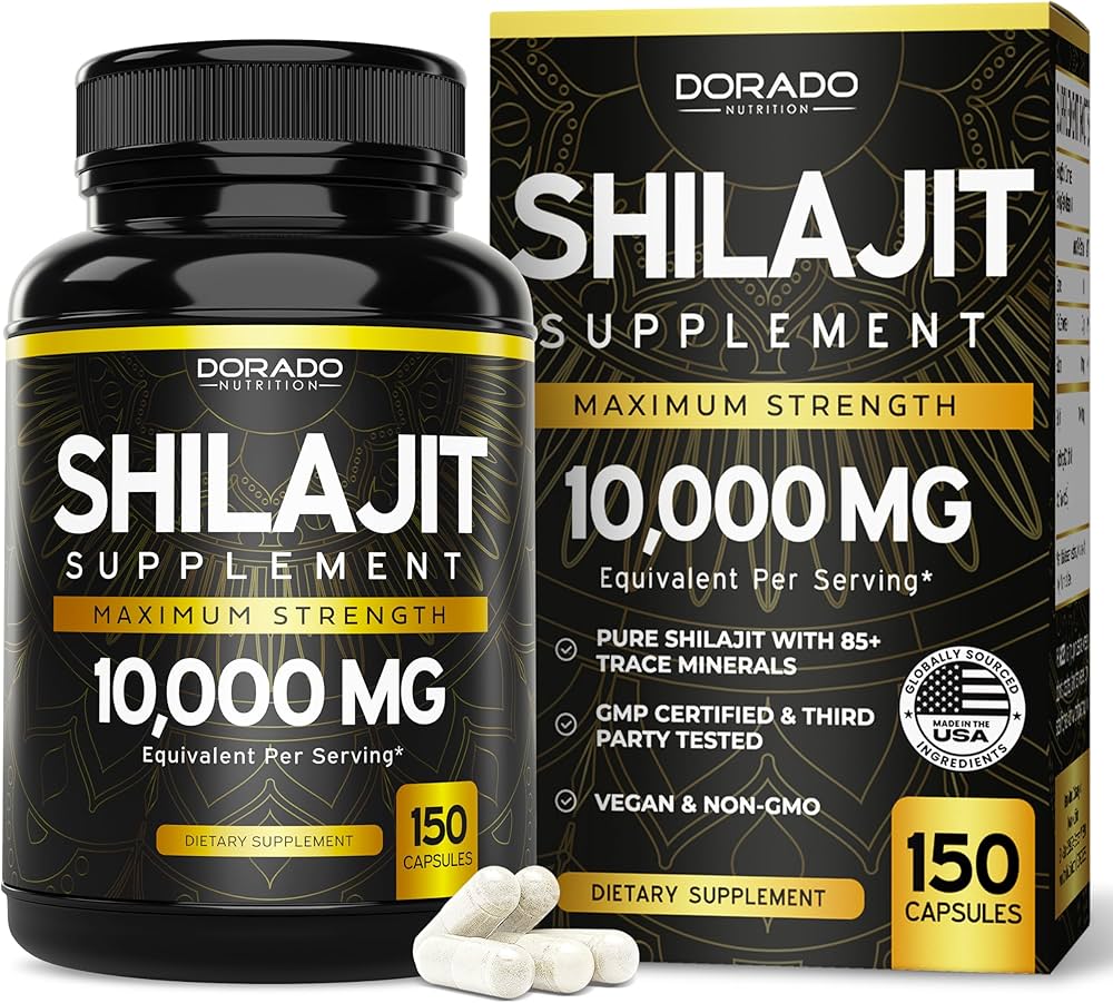 Dorado Nutrition Shilajit offers a high-potency, 1,000mg per serving, 85+ trace mineral supplement designed to boost energy, enhance mental clarity, and support immune function.